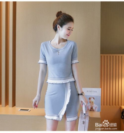 穿一身浅色的套裙。