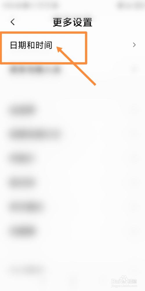 在更多设置页面中,点击页面上的日期和时间,如下图所示: