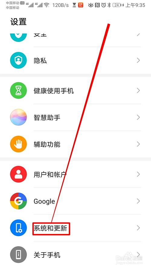2在 左下 方向,点击 系统和更新 。如果无法找到,请翻页或者上下滑动查找。
