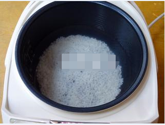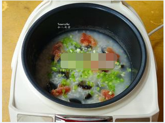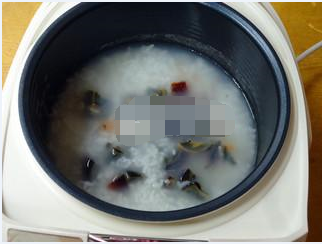 把浸泡好的大米放入锅中,加适量水,按煲粥键;