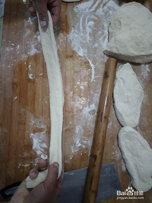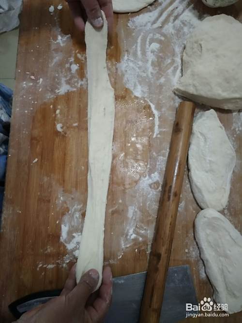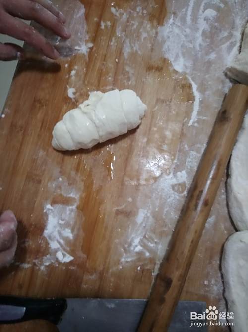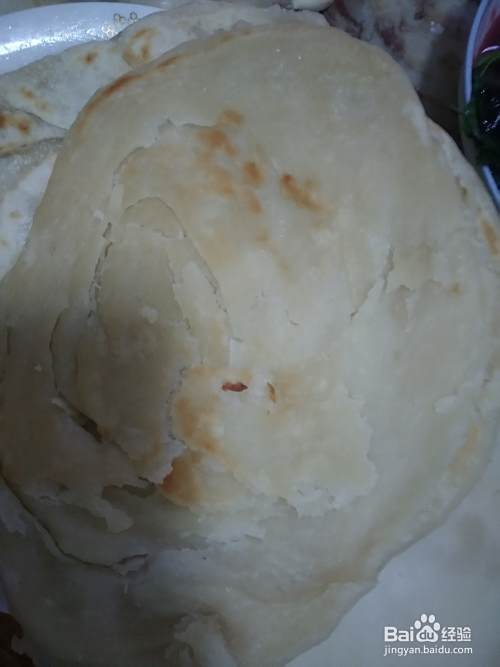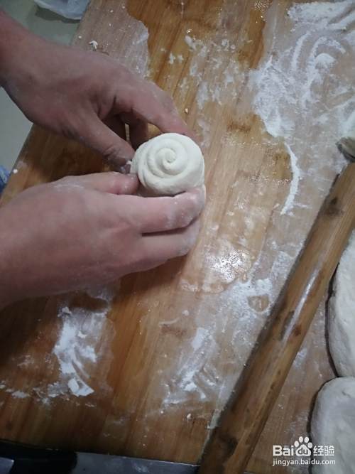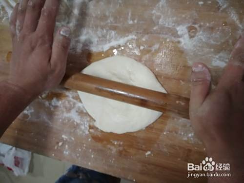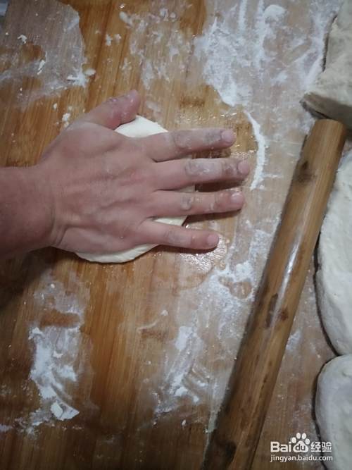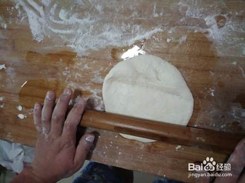 最后卷成一卷,用手按压成扁然后用擀面杖赶成饼后下锅烙制