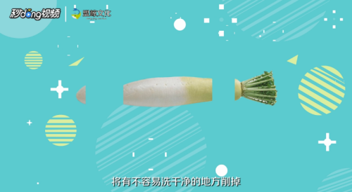 2白萝卜清洗干净后,开始削头去尾,将不容易清洗的地方削掉,必要时可以用削皮刀刮一刮。