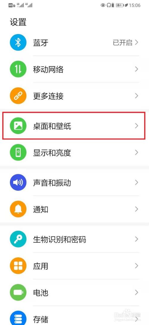 进入手机设置页面,打开【桌面和壁纸】选项,如下图所示。