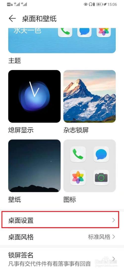 进入桌面和壁纸设置页面,打开【桌面设置】选项,如下图所示。