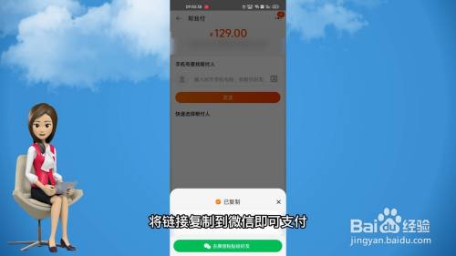 淘宝软件会自动生成一个付款链接,将链接复制到微信即可支付。
