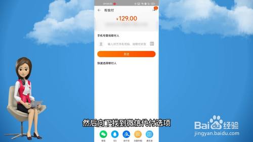 接着会跳转到一个帮付页面,然后向下找到微信代付选项。
