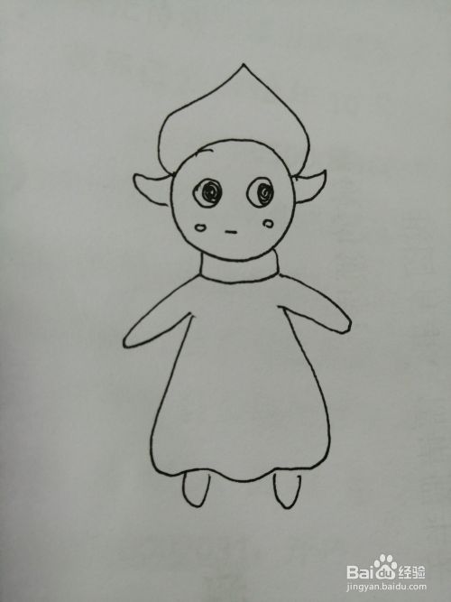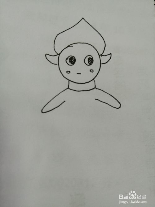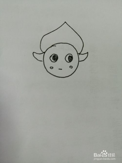 第二步,接着在小精灵的头顶画出漂亮的小精灵的帽子。