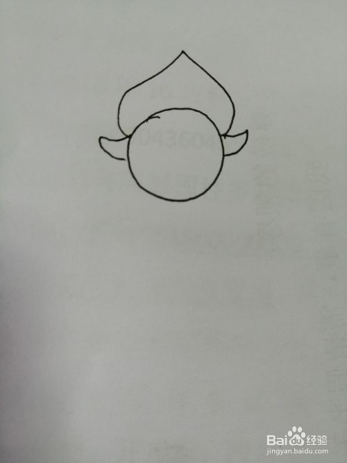 第三步,接着在可爱的小精灵的帽子两边画出两个小耳朵。