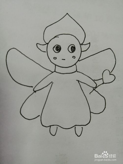 第八步,最后把可爱的小精灵右边的手上的爱心魔法棒画出来。超级可爱的小精灵就画好了。