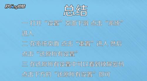 此时可以看到锁屏密码,点击“还原所有设置”即可。