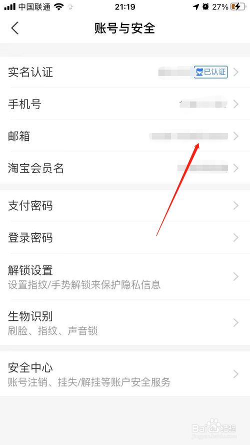 在账号与安全页面中,点击邮箱。