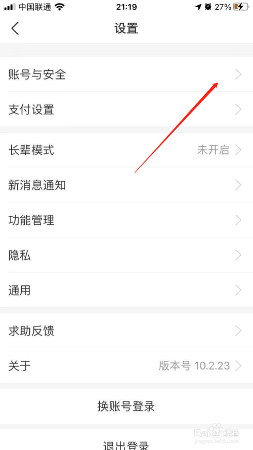 在设置页面中,点击账号与安全。