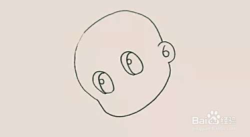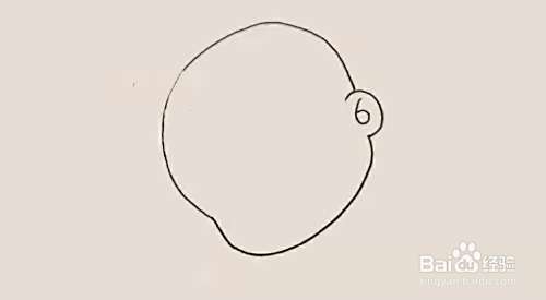 在半圆下面画上一个半圆的耳朵,里面画上一个6,接着下面再画上一个半圆连接起来。