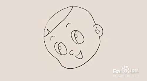 给大头儿子画上头发和眉毛,注意头发有个缺口。