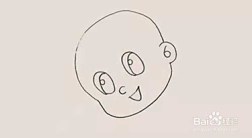 再用弧线画出大头儿子的鼻子,以及画上嘴巴。