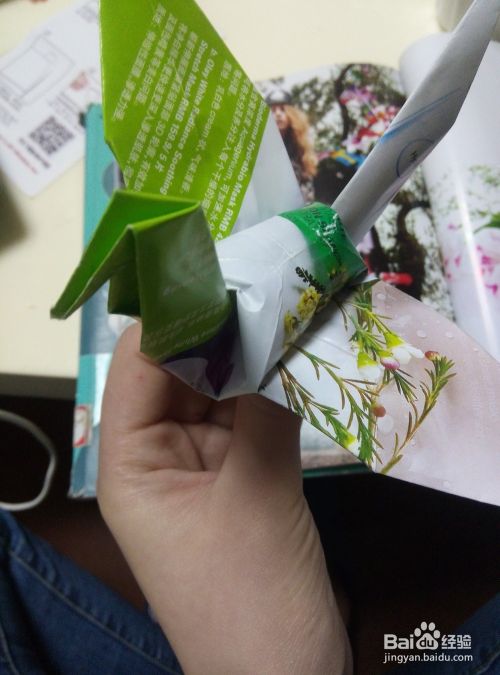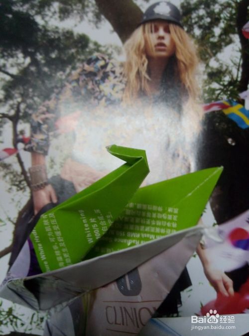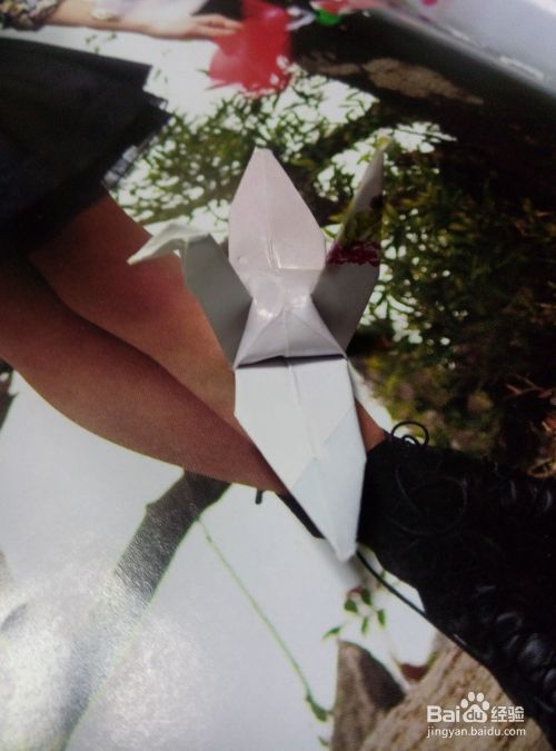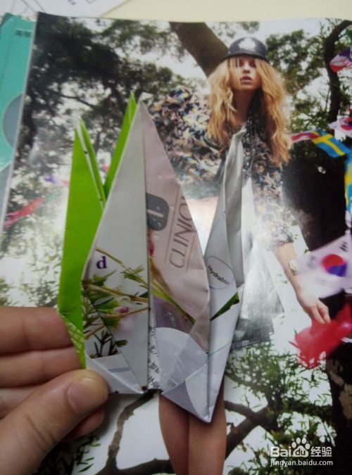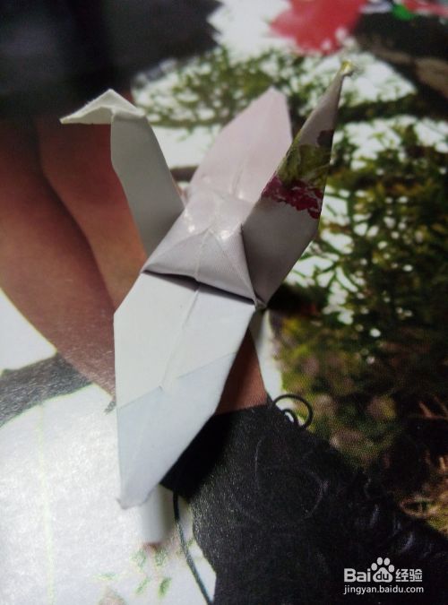 用一个角做一个纸鹤的尖嘴,并往中间下方吹口气把最后纸鹤的身体吹饱满,整理好翅膀。完成。