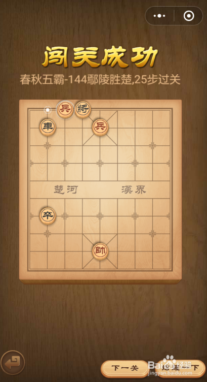 介绍微信中国象棋残局闯关中春秋五霸第144关鄢陵胜楚的闯关技巧。
