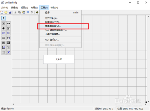 第一步在matlab中新建一个gui界面之后,点击工具->菜单编辑器,如下图所示: