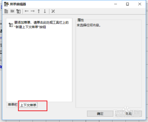 第二步进去菜单编辑器之后,点击底部的“上下文菜单”,这个就是右键菜单,如下图所示: