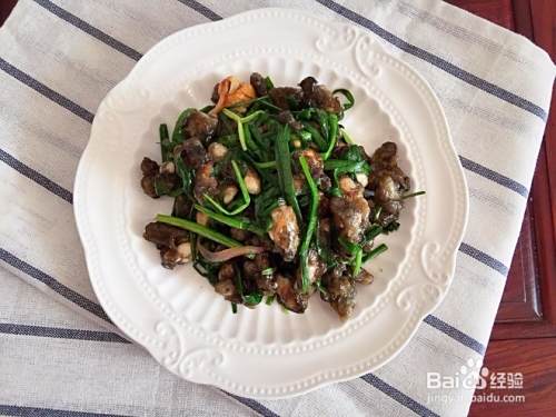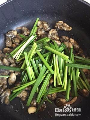 慢慢煎至两面微微焦黄,入切段的韭菜翻炒均匀