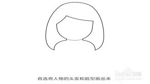 首先将人物的头发和脸型画出来,添加上肩膀和脖子
