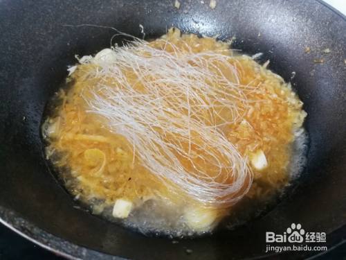 煸炒1分钟左右,放入水和酸菜齐平,放入粉丝。
