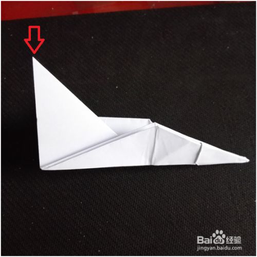 我们把右上角对准折痕折下去,同样,左上角也这样折下去。