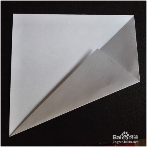 然后,我们把上面的边折下来,注意上面的边一定要恰好挨住已经折过去的右下角。接下来我们展开折过去的右下角。