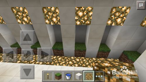 建好墙后,开始填房顶,房顶中间用萤石填上,这样就不需要火把照明了。