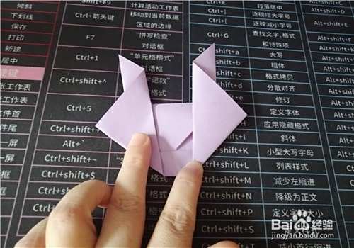 再把彩纸换个方向,下面的两个角向上折,如图一。再把两侧的边向里折,如图二。