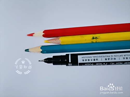 首先准备好要用到的材料,一张白纸、一支勾线笔和一些彩色笔(颜色随意)。