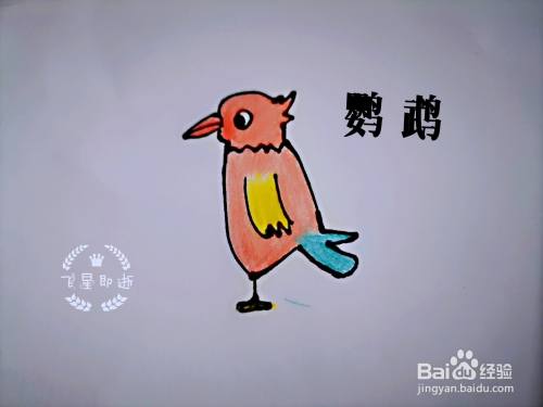 最后我们给鹦鹉涂上颜色(颜色可按个人喜好随意搭配),就这样鹦鹉画好了。