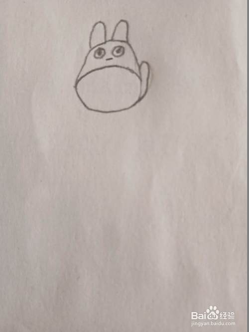 然后在里边画出一条弧线,将龙猫的肚子和头分开。