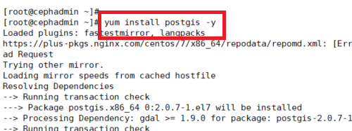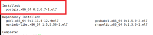 yum install postgis -y来安装这个插件包,耐心等待安装完毕。