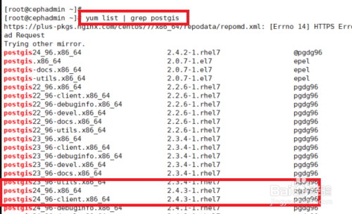 来查看安装包信息,可以看到确实有postgis的安装包,而且最新的版本是2.4.3,然后我们就使用命令: