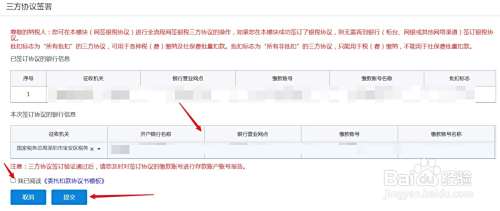 输入银行账号信息,注意,勾选“我已阅读”,点击“提交”。