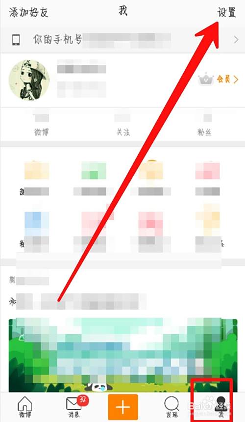 然后我们在首页点击右下方的【我】,再去点击右上方的【设置】。