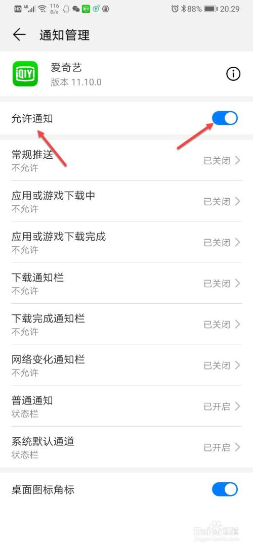 找到允许通知,拖动滑块。