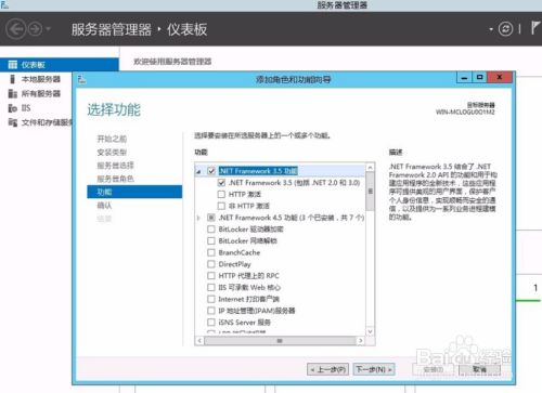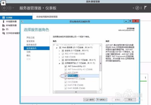 一直“下一步”,直到点出“服务器角色”选项卡,勾选asp.net 3.5