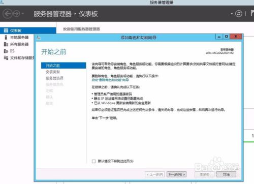 打开服务器管理器,点击左侧的“仪表盘”,然后点击“添加角色和功能”