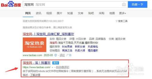第二步,在搜索框中输入“淘宝网”,点击下方红框处内容;