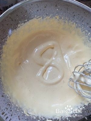 打到质地蓬松,颜色发白,体积变大,划8字花纹消失缓慢。开始可以用高速打发。