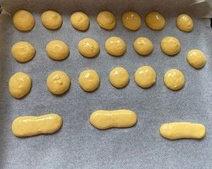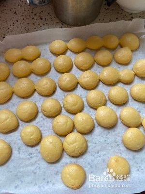 把翻拌好的面糊装到裱花袋里,挤到烤盘上。