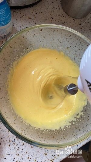 2个蛋黄和1个全蛋放入盆中,用电动打蛋器打发。
