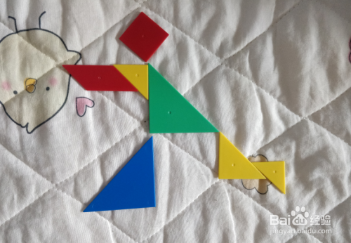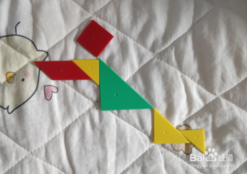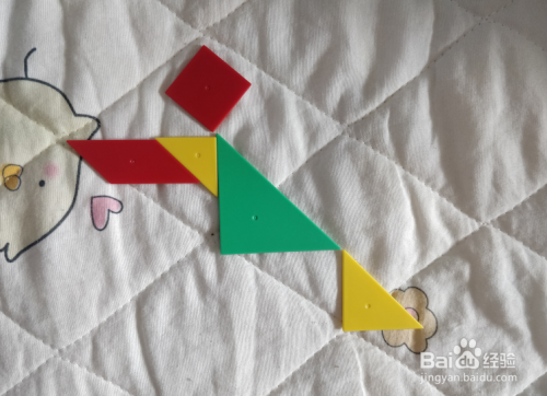 放上左右挨着的平行四边形、黄色小三角形,如图。