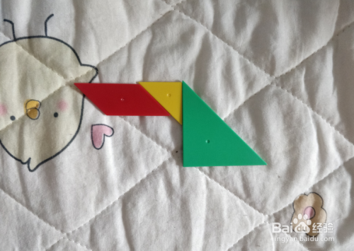 在绿色三角形右下,放上黄色三角形挨着,如图。