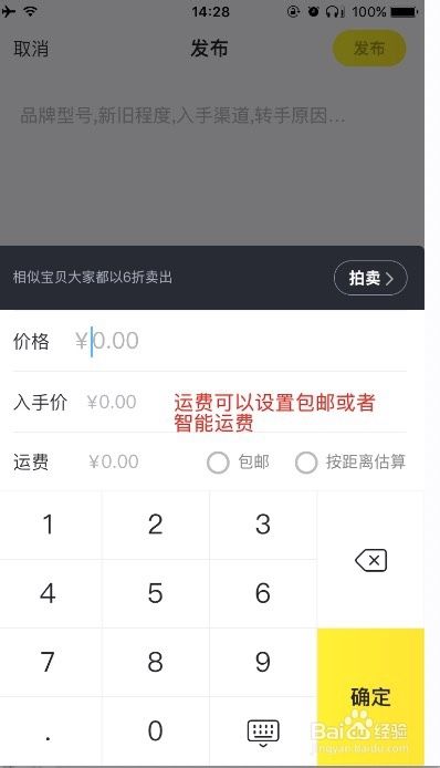 选择完图片后点击确定后,输入相应的文字内容,价格,发货地等相关信息