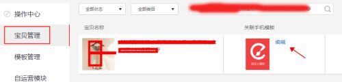 点击宝贝管理,我们在右边可以手机关联模板,进入编辑页面。