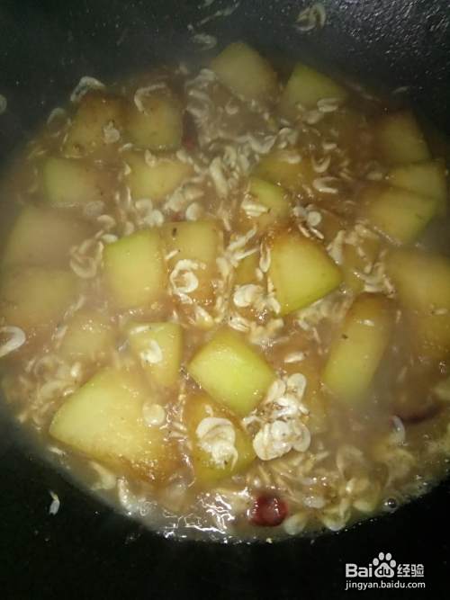 将洋葱炒香,将冬瓜下入锅里,加入适量的水;