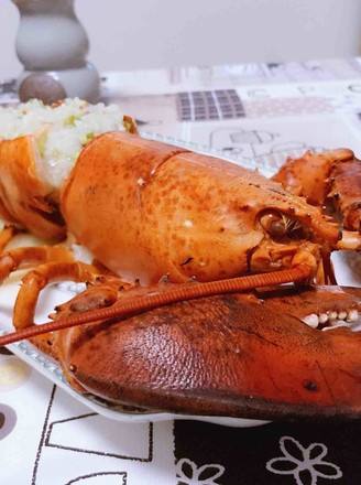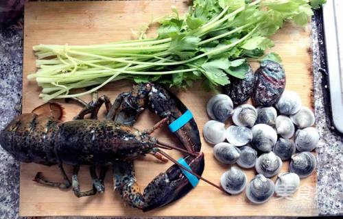 与大米一起熬制30分钟左右,加少许盐即可,龙虾壳蒸熟装盘